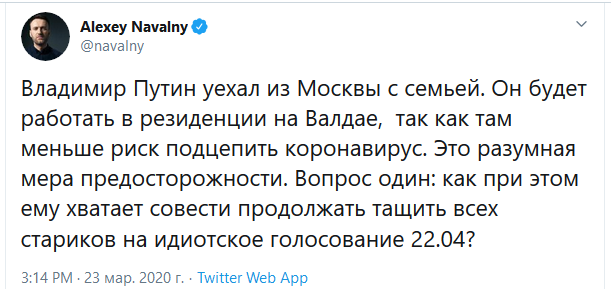 Либералы же, не разобравшись в ситуации, принялись сеять панику, уверяя общественность в том, что российский лидер уехал «в изоляцию».