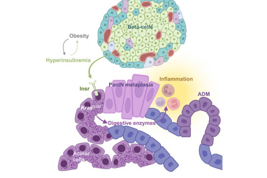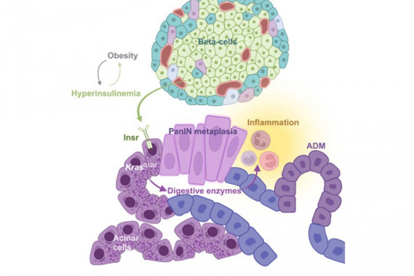 Ранее ученые выявили, что снижение выработки инсулина подавляет предраковые поражения поджелудочной железы у мышей с мутацией Kras. Однако до настоящего времени не было ясно, влияет ли гиперинсулинемия на клетки-предшественники рака прямо или косвенно. Исследователи также обнаружили, что инсулин в зависимости от дозы стимулирует образование метаплазии ацинарно-протокового типа, и это является зависимым от активности трипсина и рецептора инсулина.
