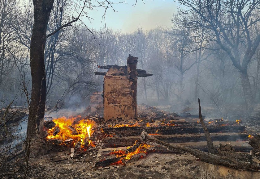 Огонь захватывает новые территории в зоне отчуждения, украинские пожарные не могут справиться со стихией