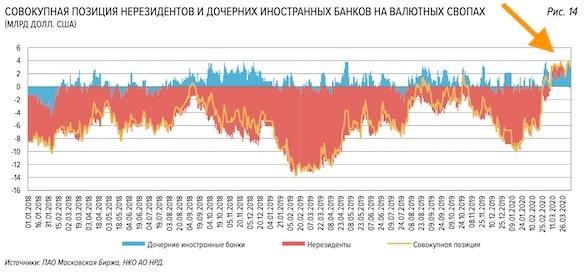 10 марта, в первый день торгов после 30-процентного обвала Brent, нерезеиденты купили валюты на 82,2 млрд рублей, а с 11 марта начали избавляться от российского госдолга.