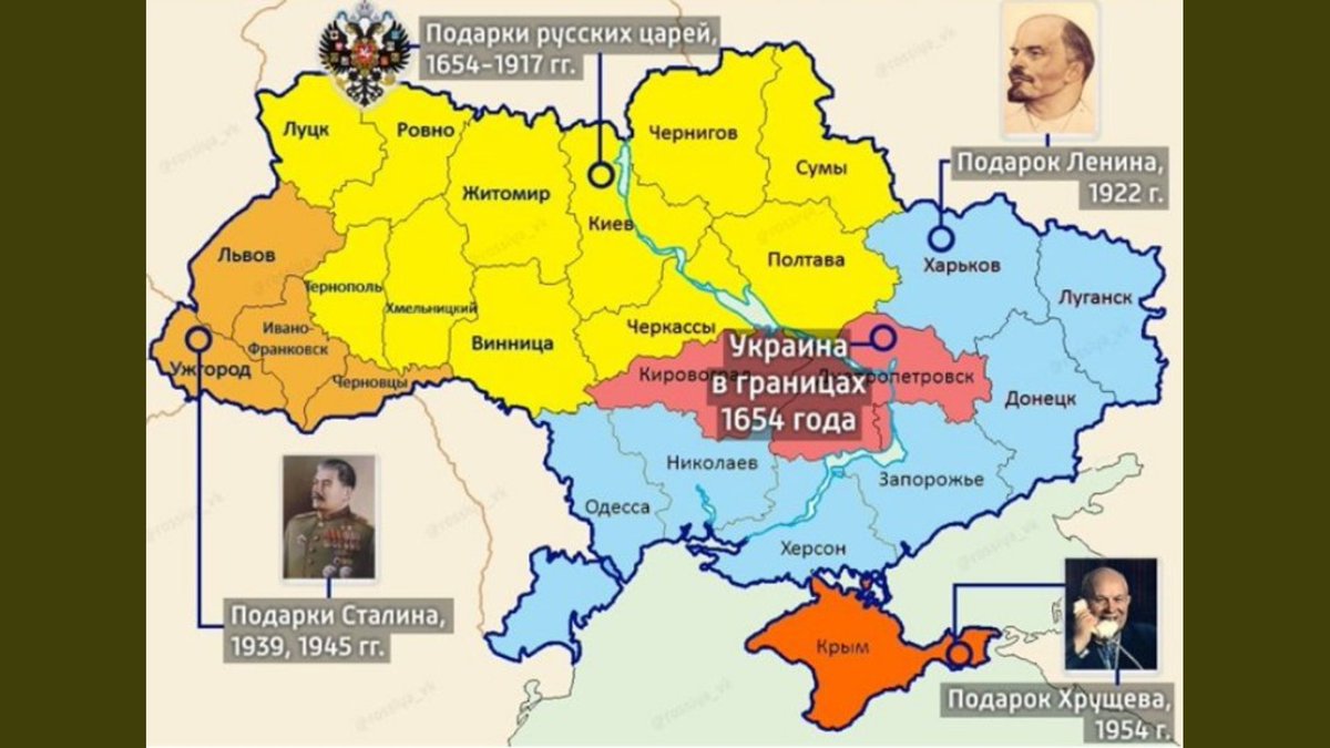 «Большевики что сделали – они к исторически украинским землям, населенным украинским населением, прибавили русские регионы. Харьковщина – это русский регион, Одесса – это русский регион. Донецк, Луганск, Николаев, Херсонщина – это все были русские регионы. Почему так большевики сделали? Потому что они опасались украинского национализма. Он уже проявлялся и в XIX веке, проявился в частности в 18-м году, когда была сформирована независимая украинская республика.