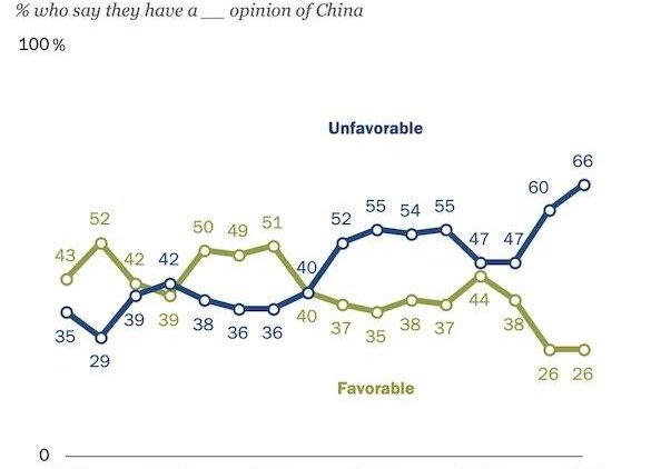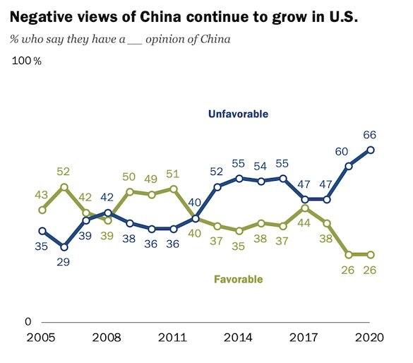 Отношение населения США к Китаю резко ухудшилось на фоне пандемии коронавируса, в которой администрация Дональда Трампа обвиняет китайское руководство, выбравшее политику замалчивания на ранних этапах вспышки.