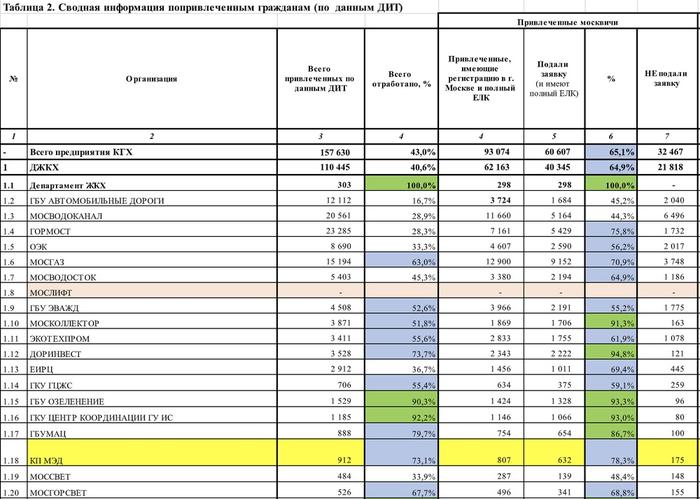 Есть сводная таблица по привлеченным гражданам. Это то, что называется «приведи голосовать трех знакомых». Видно, что департамент ЖКХ задачу выполнил (молодец Петр Петрович Бирюков), а вот в отношении руководства ГОРМОСТА, видимо, надо какие-то оргвыводы делать.
