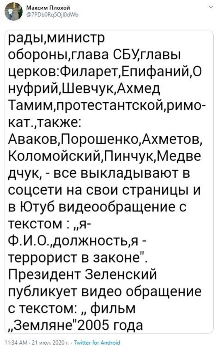 перед камерой назвать себя "террористами в законе", отметив, что имеет в виду