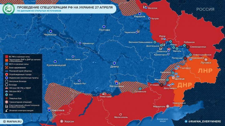 Карта боевых действий на сегодня, 27 апреля 2022 года