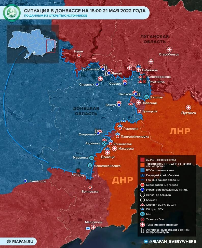 Карта боевых действий в ДНР и ЛНР: ситуация на Донбассе сегодня, 22.05.2022