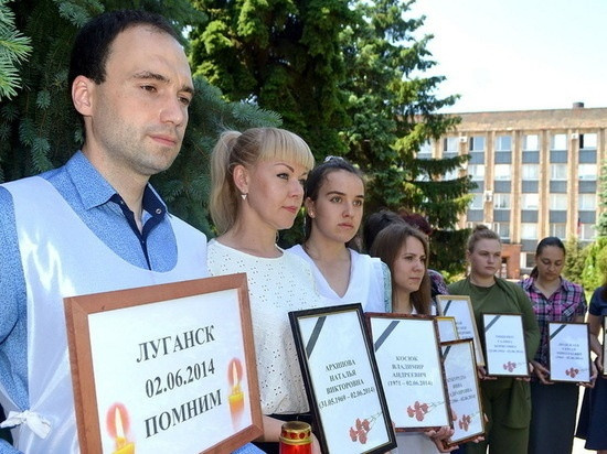 Жители Луганска накануне почтили память погибших 2 июня 2014 года от авиаудара по зданию бывшей Луганской областной администрации.