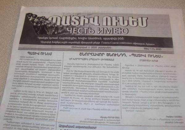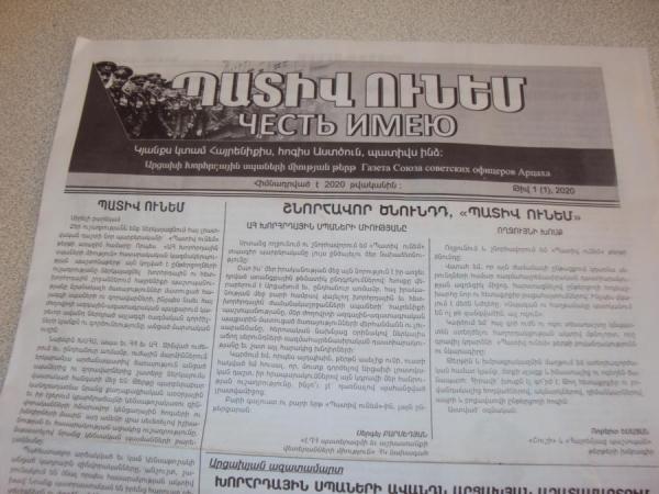 Неправительственная организация «Союз советских офицеров РА» начала издавать в Степанакерте свою газету «Честь имею».