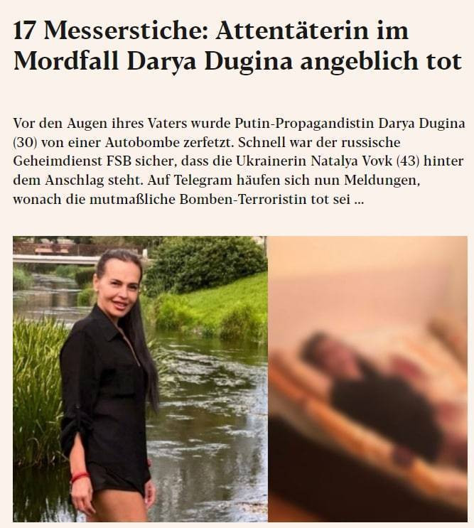 СМИ Австрии: убившая Дарью Дугину Наталья Вовк умерла от ножевых ранений