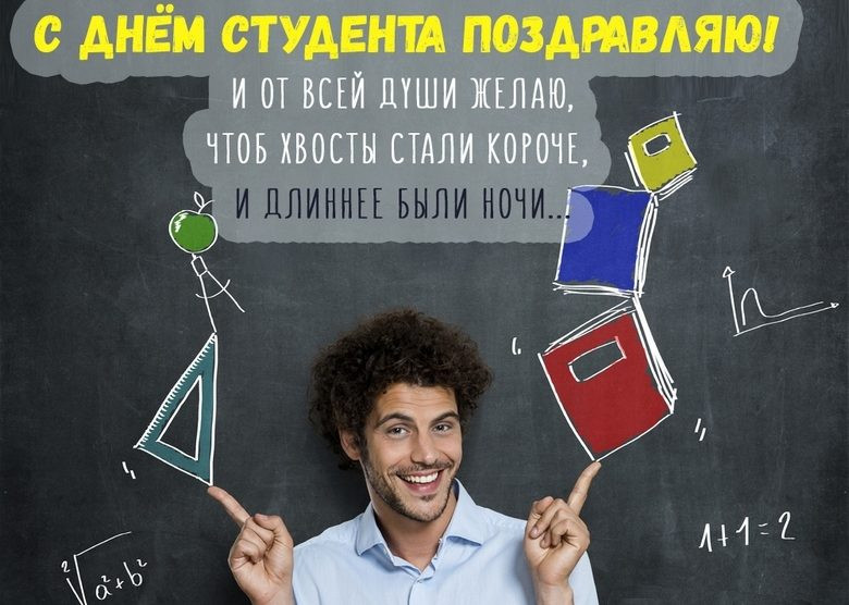Поздравляю с днем студента! Желаю сдавать все зачеты и экзамены только на отлично. Пусть учебный процесс проходит легко и познавательно. Пусть стипендия будет большой, преподаватели добрыми, а диплом красным!