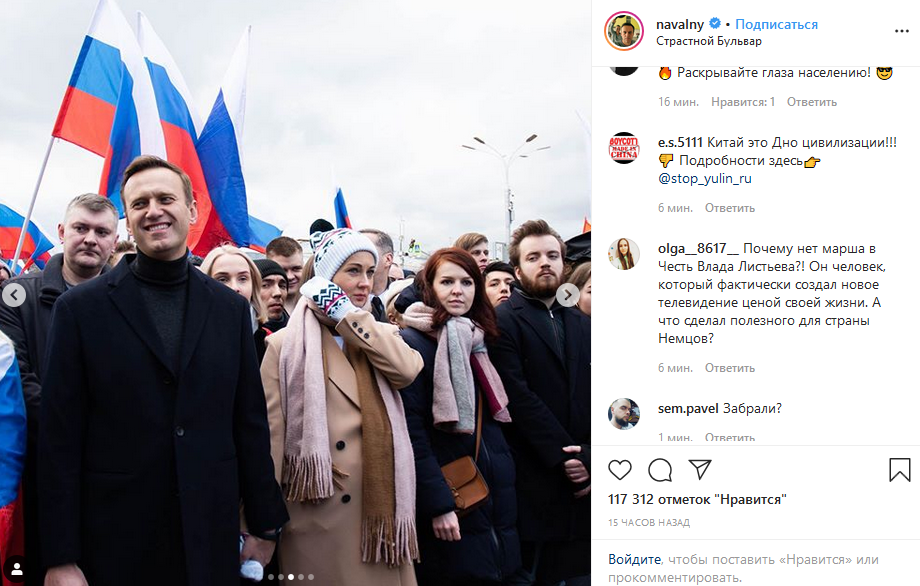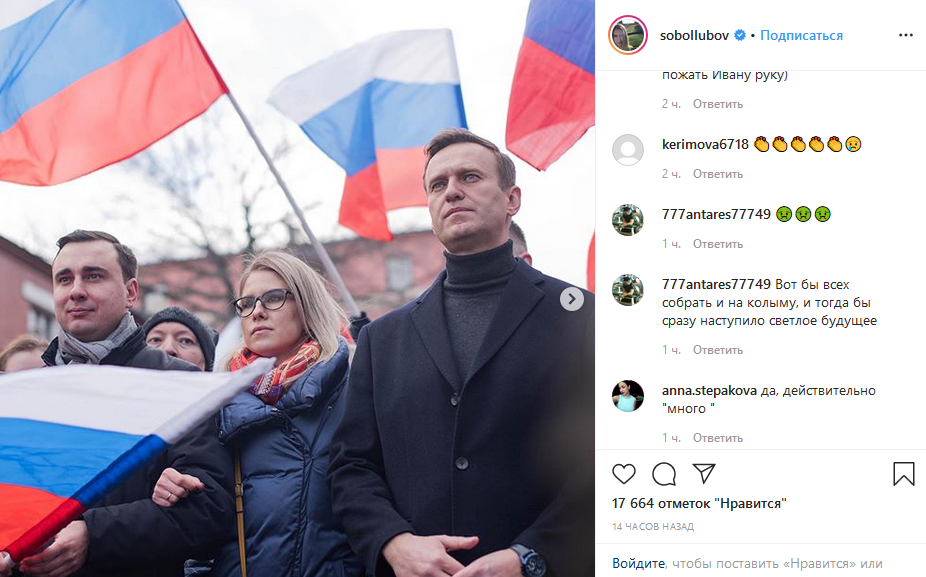 Однако общественность отреагировала на отчет совершенно не так, как ожидала Соболь. Очевидцы раскритиковали подружку Навального и самого скандального блогера за то, что на шествии они провели всего несколько минут, сделали селфи и удалились.