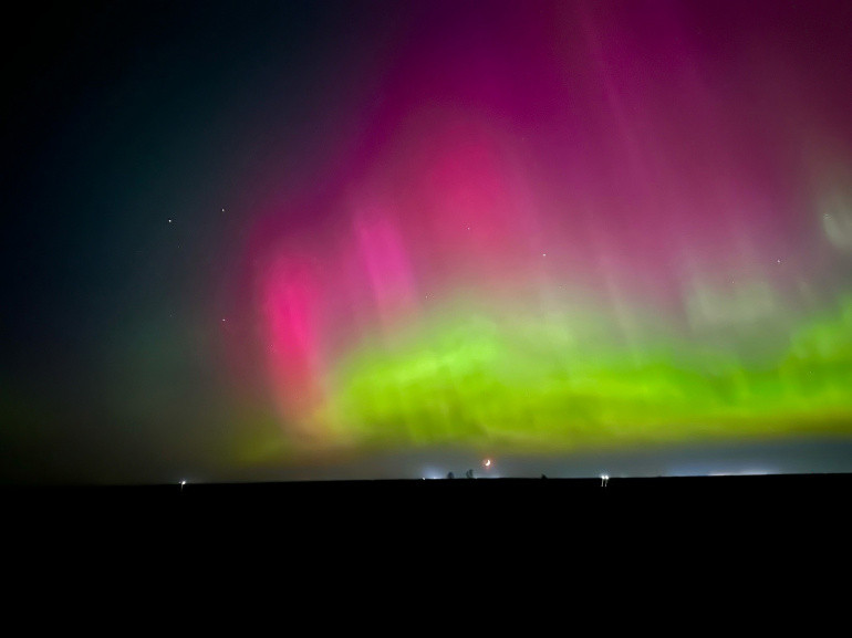 Небо над областью осветила Венера — планета подобралась очень близко к Луне. После чего небо, как на крайнем севере начало сверкать и переливаться яркими красками вследствие сильнейшей магнитной бури. Многие успели запечатлеть редкое явление на ясном вечернем небе.