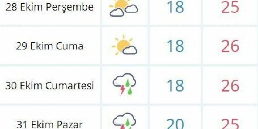 В общем согласно опубликованному прогнозу погоды на ближайшие дни, то начиная с субботы 31 октября, в Аланье ожидается сильный дождь и гроза. Такая погода будет в субботу, воскресенье и до среды 3 ноября.