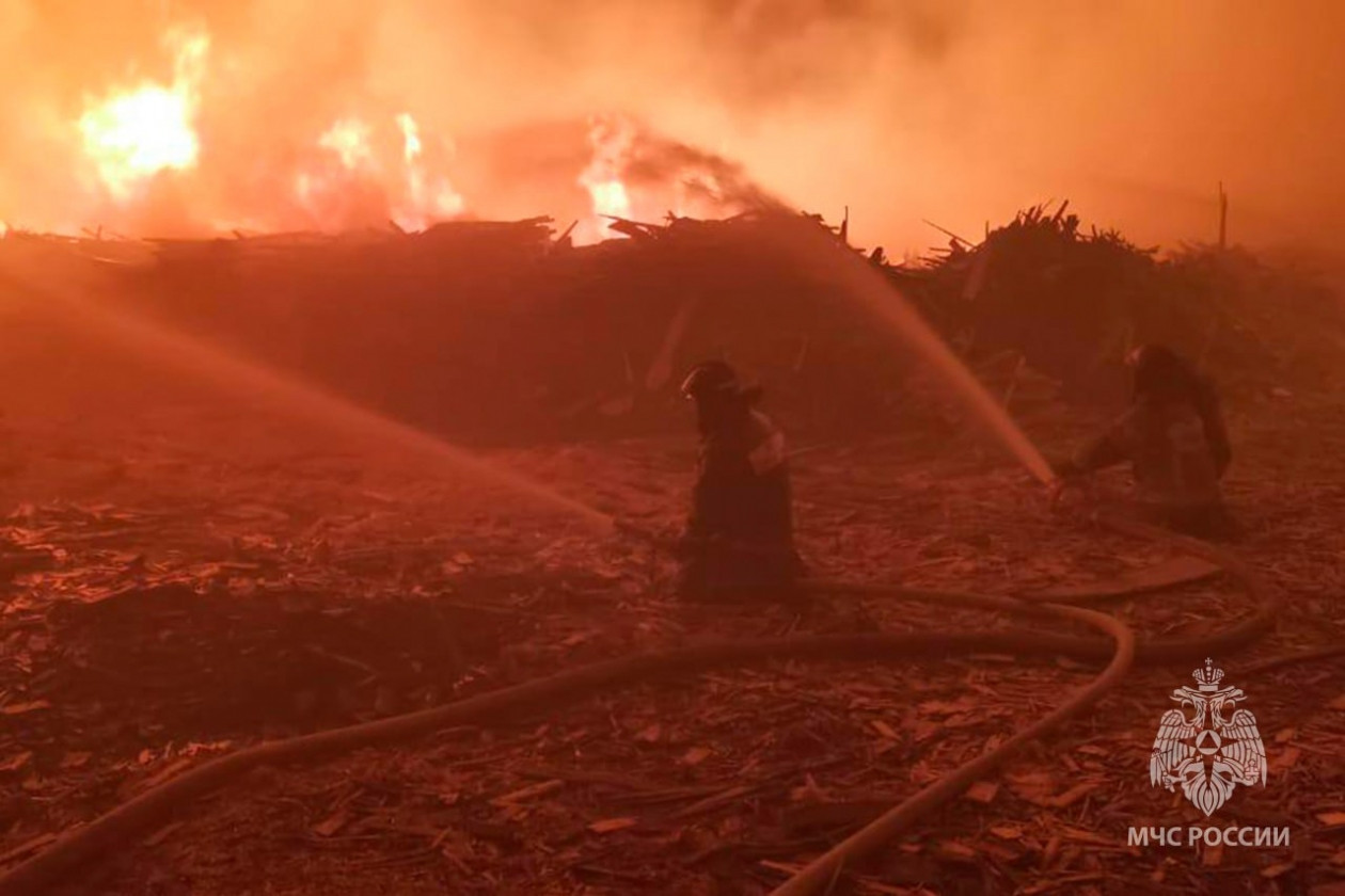 В Арсеньеве ночью полыхали отходы лесопроизводства