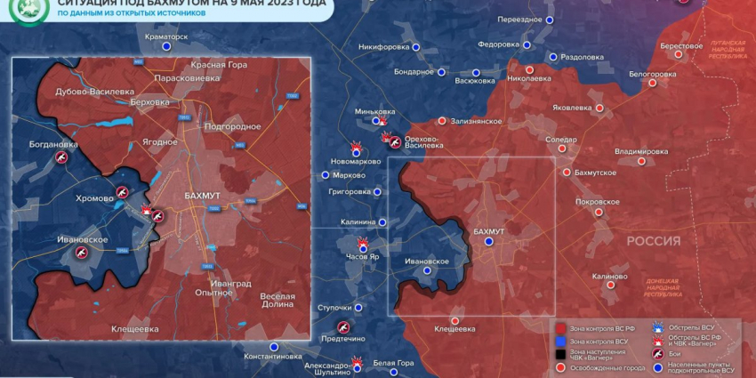 Донбасс сегодня 10 мая 2023. Карта боевых действий, новости с фронта, сводки, обзор, итоги военной спецоперации (СВО) России на Украине 10.05.2023