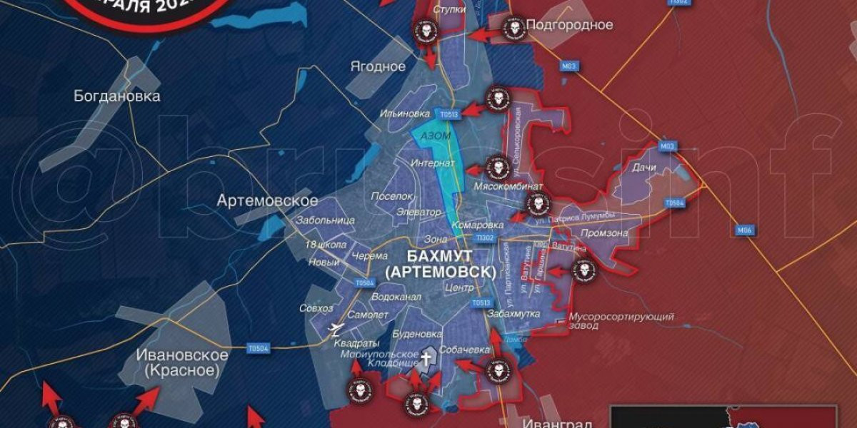 - Штурм Артемовска (Бахмут), военные новости с фронта сегодня 22 февраля 2023: Ситуация в Артёмовске. Наступление на Артёмовск: МО России опровергает сообщения о блокировании поставок боеприпасов добровольцам штурмовых отрядов в Артемовске
