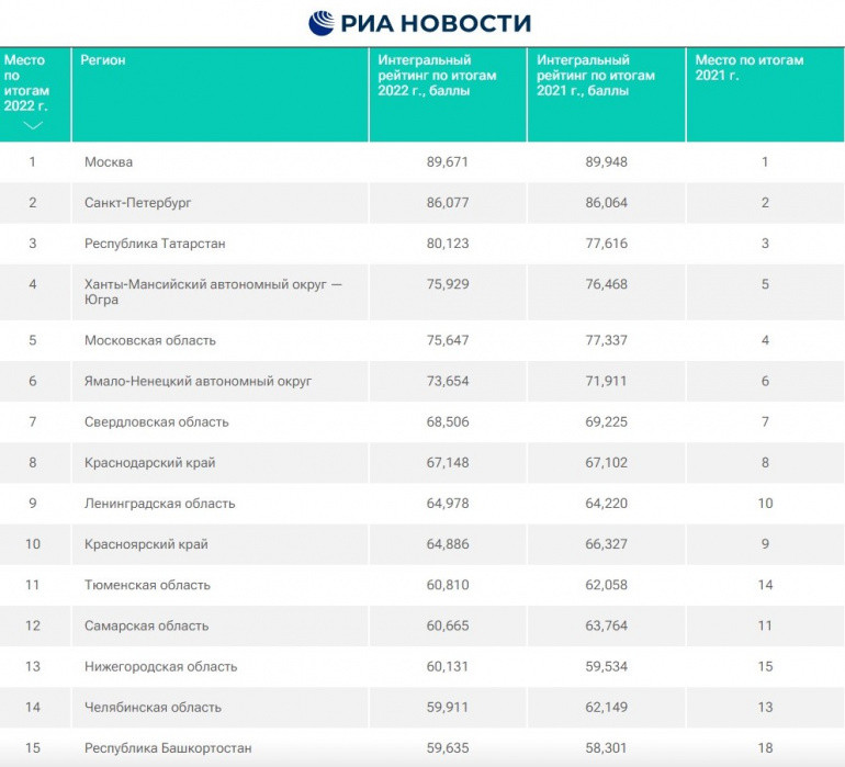 — В 2022 году Челябинская область набрала 59,9 баллов из 100 возможных по интегральному рейтингу. В 2021 году регион занял 13 место по этим же показателям, набрав 62,1 балла, — сообщается в исследовании «РИА Новости».