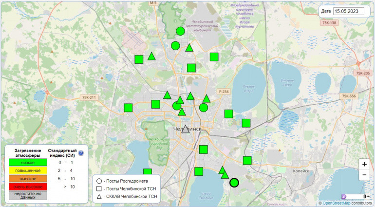 По данным единой информационной системы мониторинга качества воздуха, утром 15 мая в атмосфере Челябинска превышений содержания вредных веществ не фиксируется.