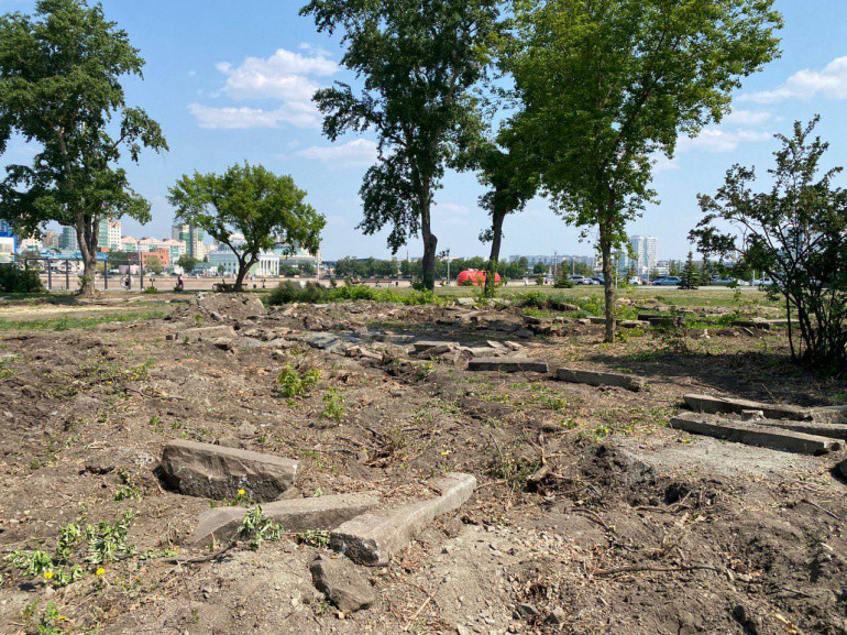 В челябинском Саду камней разобрали разрушенный фонтан и спилили старые деревья