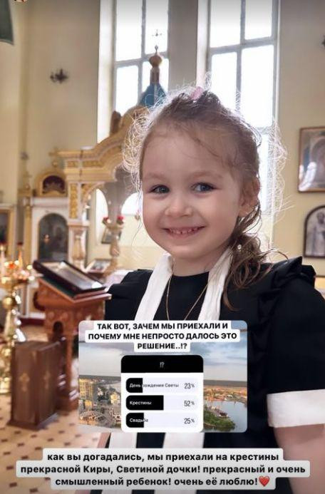 «Когда Света мне это предложила полгода назад, а очень переживала из-за того, что мы живем в разных городах, и мне будет очень сложно поддерживать близкую связь. Но я все хорошо взвесила и приняла решение по сердцу. Теперь у меня есть еще одна крестная дочь, и я очень этому рада», - призналась селебрити.