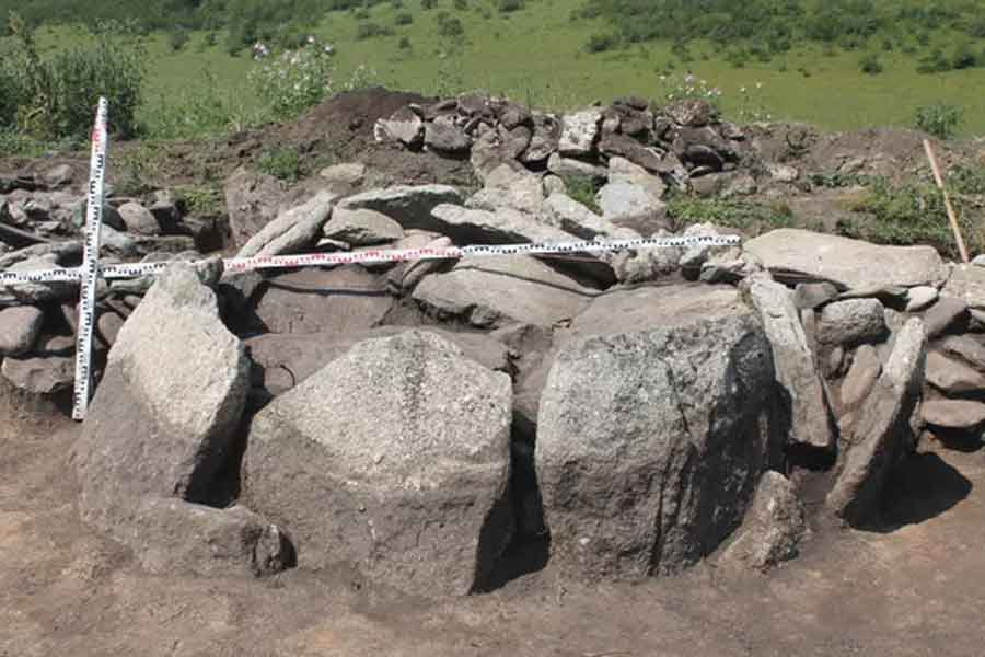 Как отметил профессор Сергей Грушин, глава экспедиции, специалист Научно-образовательного центра алтаистики и тюркологии "Большой Алтай", останки были найдены на могильнике афанасьевского времени, где стартовали раскопки три года назад. Могильник представляет собой мегалитическое сооружение, сложенное из массивных каменных плит, вкопанных в грунт вертикально.