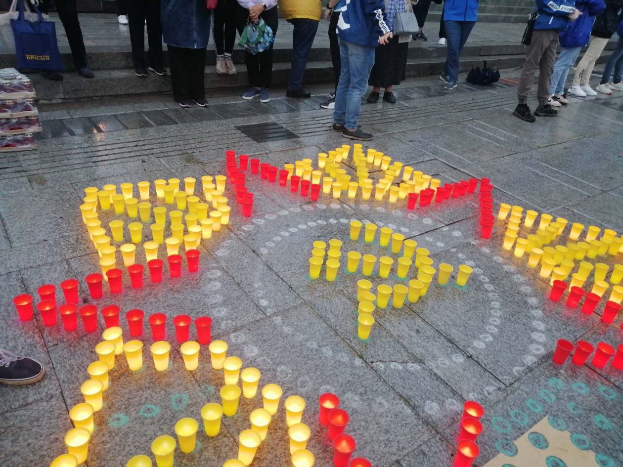 У Вечного огня на Корабельной набережной Владивостока волонтеры составили из десятков разноцветных свечей изображение ордена Великой Отечественной войны и надпись “Помним”. Среди тех, кто собрался в этот вечер на набережной, были участники молодежных объединений, “Серебряные волонтеры”, представители органов региональной и муниципальной власти, общественники и активисты.
