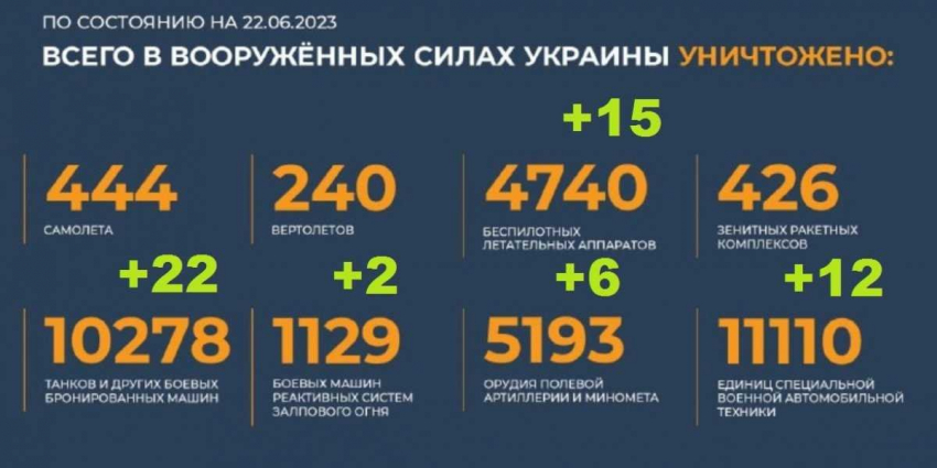 - Сводка Министерства обороны Российской Федерации 22.06.2023 г.