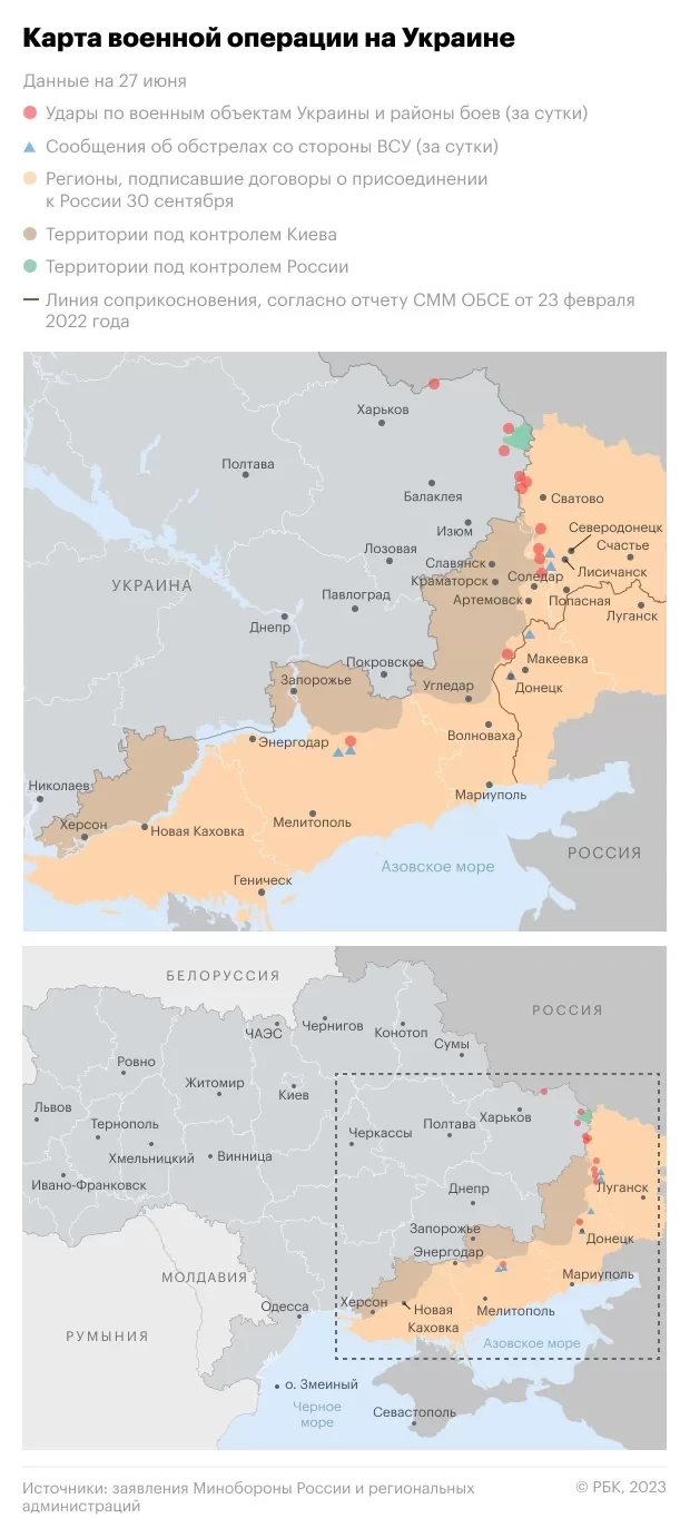 Между тем в городе Запорожье, подконтрольном ВСУ, сегодня ночью также громко: местные жители сообщают о взрывах. Неизвестно, идет ли речь о запуске украинскими националистами ракет ПВО или о результативных ударах российских войск.