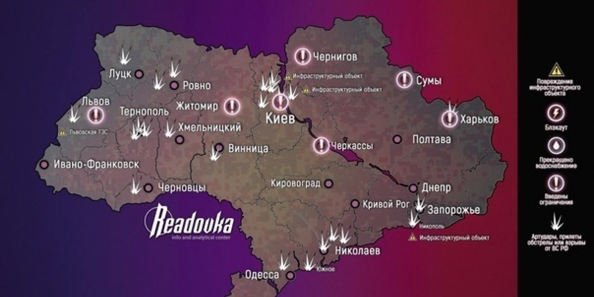 Сводка по ударам возмездия по состоянию на 2022 г. Украина под ударами возмездия — в разных регионах страны, где были замечены ракеты, слышны взрывы. Поражены объекты энергетической инфраструктуры