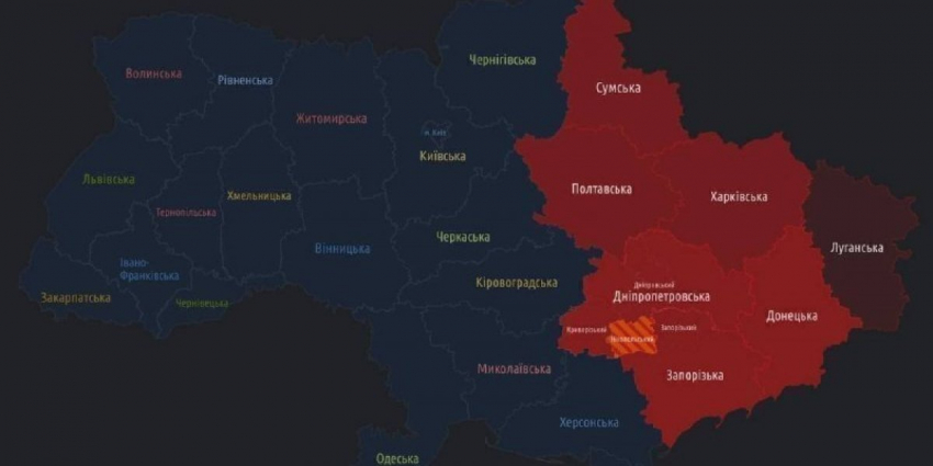 - Карта воздушной тревоги на Украине сегодня: Воздушная тревога объявлена по всей Украине