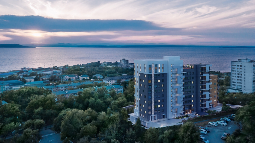 Примечательно, что окна практически каждой квартиры жилого комплекса открывают шикарный вид на море, позволяющий каждый вечер любоваться на красивейшие закаты. А из части жилых помещений разворачивается дополнительный панорамный вид на город.