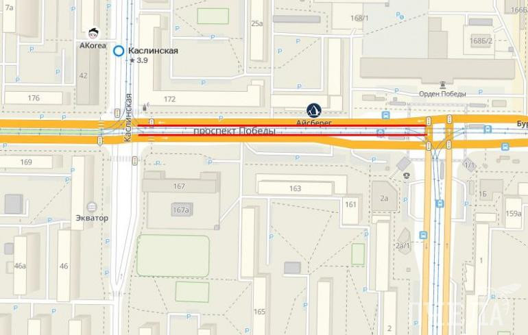 Речь идёт об участке проспекта Победы от улицы Каслинской до улицы Кирова. В связи с ремонтом проезд автомобилей вдоль рельсов будет ограничен с 3 по 23 июля.
