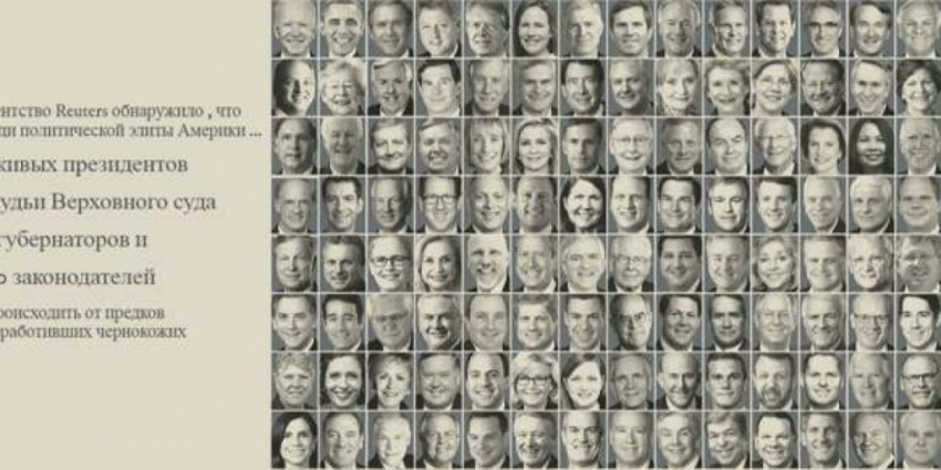 Президент Джо Байден и каждый ныне живущий бывший президент США, кроме Дональда Трампа, являются прямыми потомками рабовладельцев: Джимм Картер, (да, он все ще жив, чуть постарше Байдена, ему — 98 лет — А.Р.) ДжорджаБуш-младший, Билл Клинтон и — по линии его белой матери — Барак Обама. Предки Трампа приехали в Америку после отмены рабства.