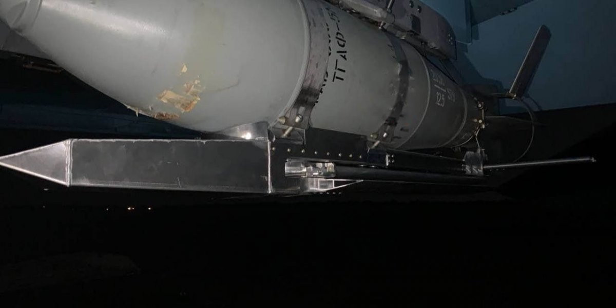 Второе известное изображение отечественной фугасной авиабомбы с универсальными модулем планирования коррекции (УМПК).