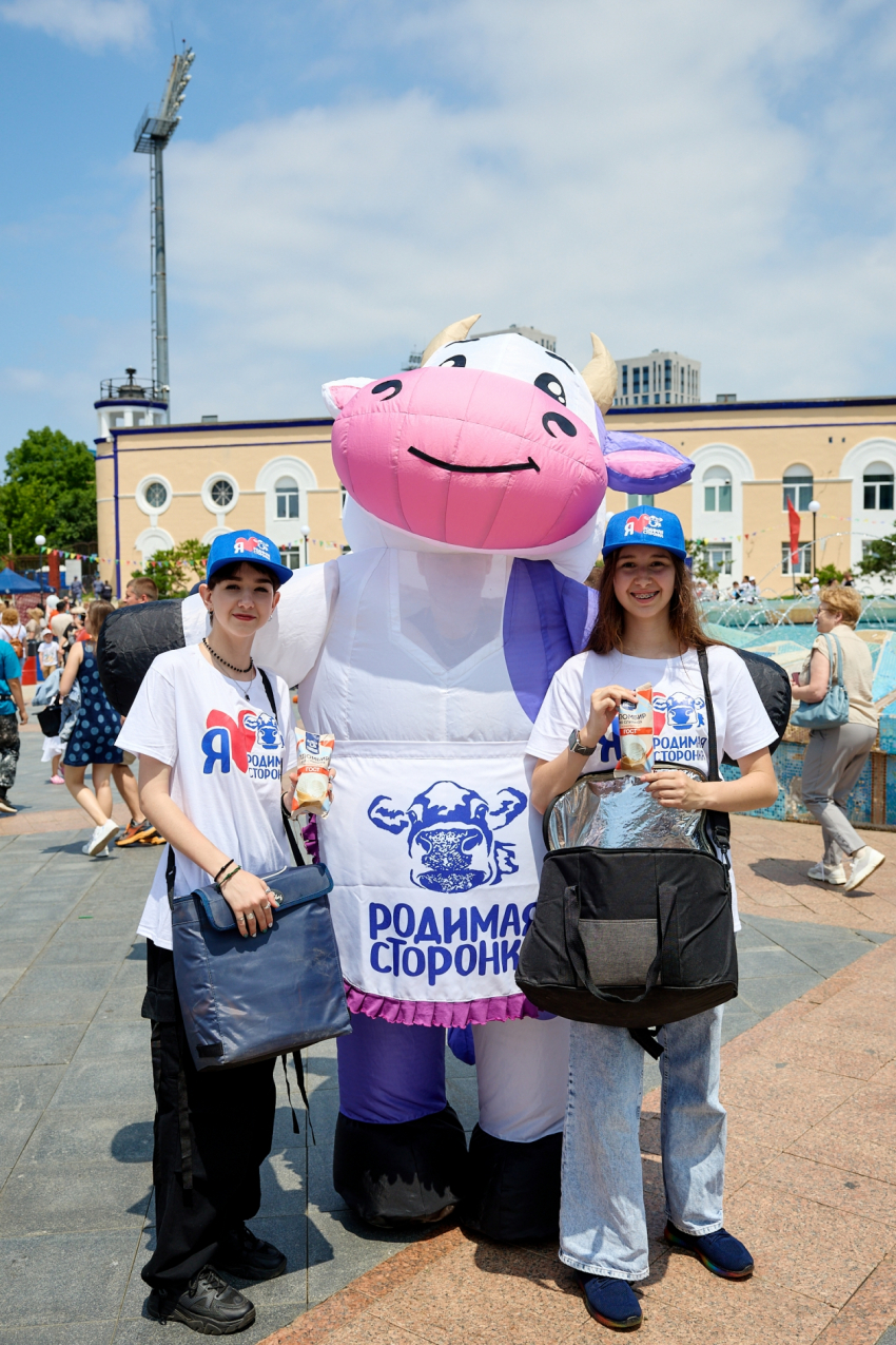 “Мы пришли на день города всей семьёй, не думали, что будет так жарко. Ночью был ливень, и мы подумали, что будет пасмурная погода. Мороженое очень вкусное, мы и сами покупаем его в магазинах. От кепки в восторге наш ребенок — такая смешная коровка получилась”, — поделилась жительница Владивостока Ирина.