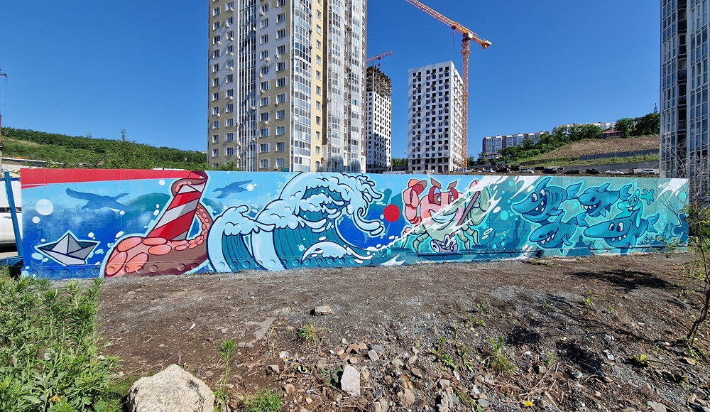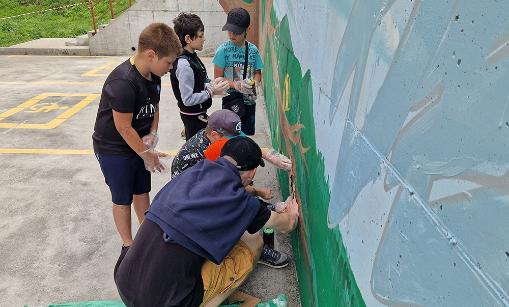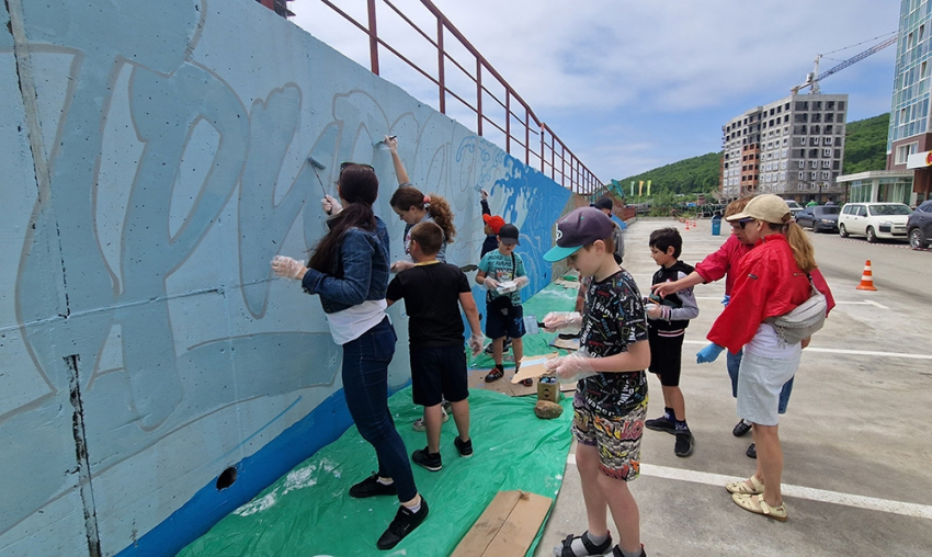 В рамках проекта 24 июня на Сочинской, 15 прошел мастер-класс от художников. Они помогли местным жителям, среди которых было немало детей, задекорировать подпорную стену. С помощью красок, кистей и трафаретов некогда серый неприглядный бетон превратили общими усилиями в огромное яркое панно, посвященное природе. Главный посыл этой работы передали известным многим с детства лозунгом “Береги Природу”, который и увенчал композицию.