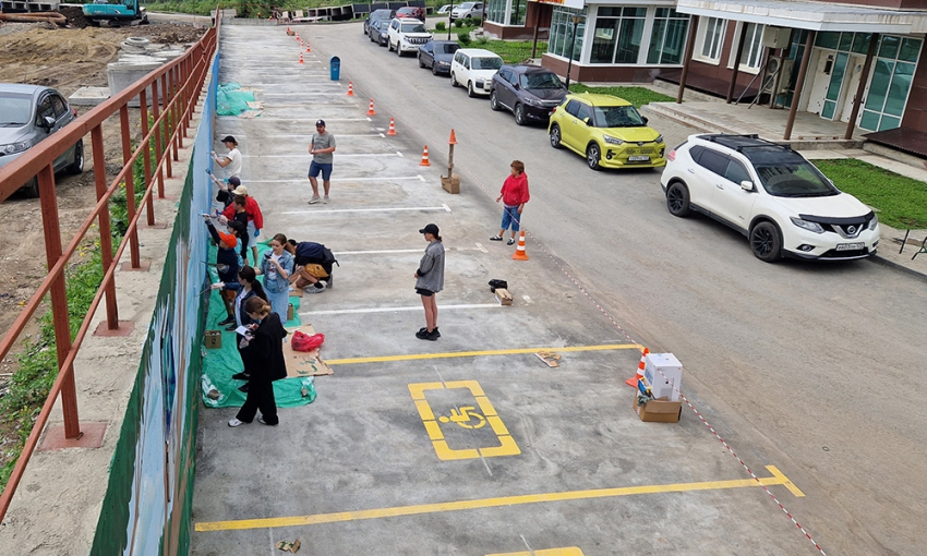 Как рассказали авторы проекта, 23 июня художники из партнерской мастерской подготовили фон и нанесли основные контуры композиции. А после совместной с местными жителями акции, 25 июня, завершили декорирование стены.