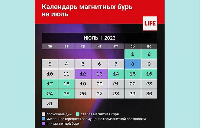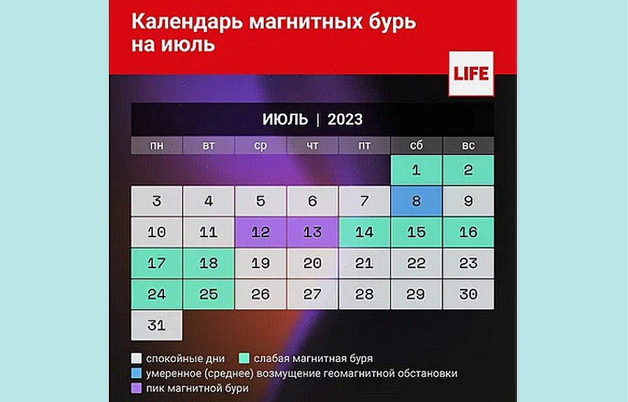Расписание магнитных бурь на июль 2023 года: инфографика