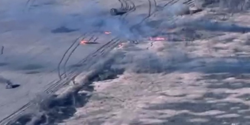 На кадрах можно увидеть, что во время попадания снаряда по танку, он начинает сильно воспламеняться и поднимается густой дым. По информации канала, видео было снято на запорожском направлении.