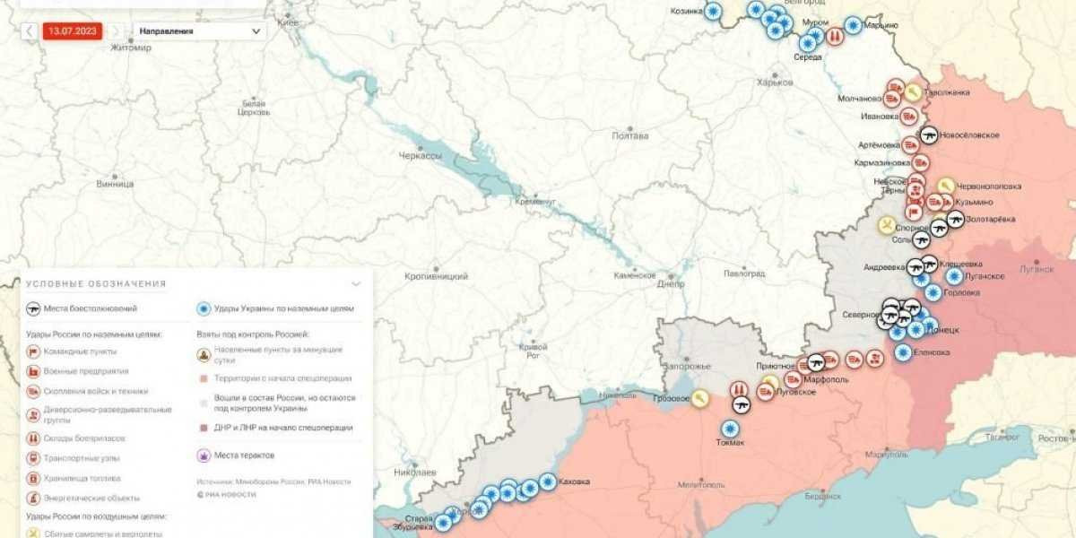- Точная карта военной операции на Украине сегодня, 13 июля 2023