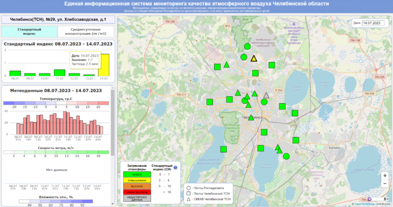 В эти минуты превышение по взвешенным частицам фиксирует пост наблюдения на улице Хлебозаводской