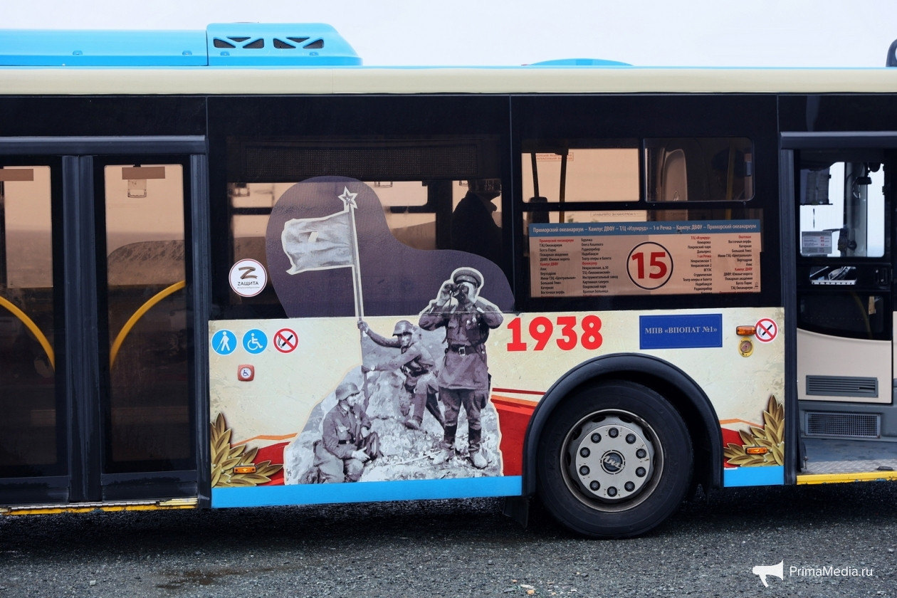 Во Владивостоке запустили автобус, посвященный 85-летию подвига советских войск у озера Хасан. Ярко-синее брендированное транспортное средство вышло на линию по маршруту №15, сообщает ИА PrimaMedia.