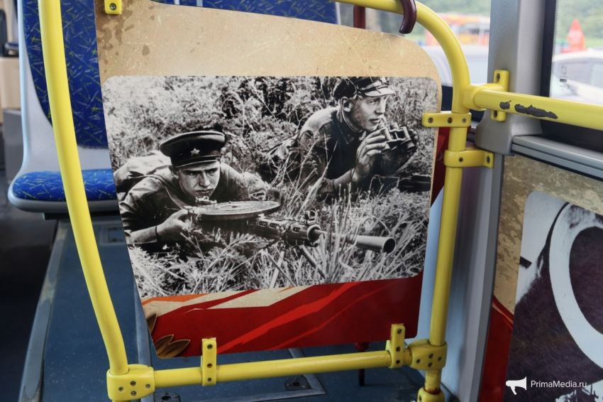 Этот проект создан совместно министерством культуры Приморского края и муниципальным автотранспортным предприятием ВПОПАТ №1 и по сути является музеем на колёсах. На кузове автобуса разместили изображения советских солдат, а в салоне можно прочитать о героях тех лет. Для тех пассажиров, которые захотят узнать больше, рядом с фамилиями солдат есть специальные qr-коды. С их помощью можно перейти на сайт проекта с более подробной информацией.