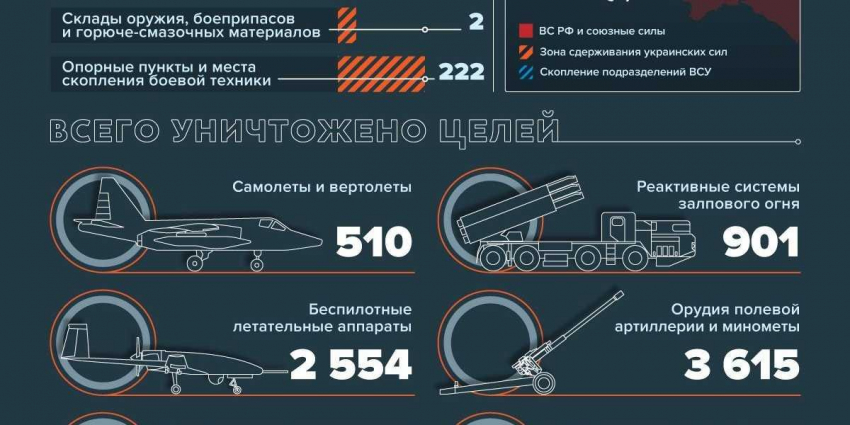 Также Минобороны России сообщает об отражении атаки ВСУ в районе Павловки и уничтожении колонны резерва, выдвигавшейся на помощь из Угледара. Всего в результате боев на Донецком направлении подтверждено уничтожение более 60 солдат противника и пяти единиц бронированной техники.