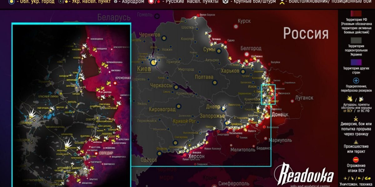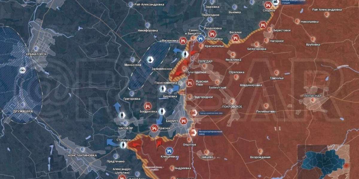 «Сегодня Бахмут — главная достопримечательность ВСУ, потому что они необходимы для того, чтобы армия могла комфортно функционировать. И пока мы здесь, все остальные будут двигаться дальше, расти, укреплять свои позиции и двигаться дальше», – сказал предприниматель. Карта