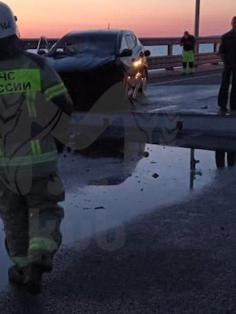 Тем временем в интернете появились фотографии с места предполагаемого взрыва на Крымском мосту.