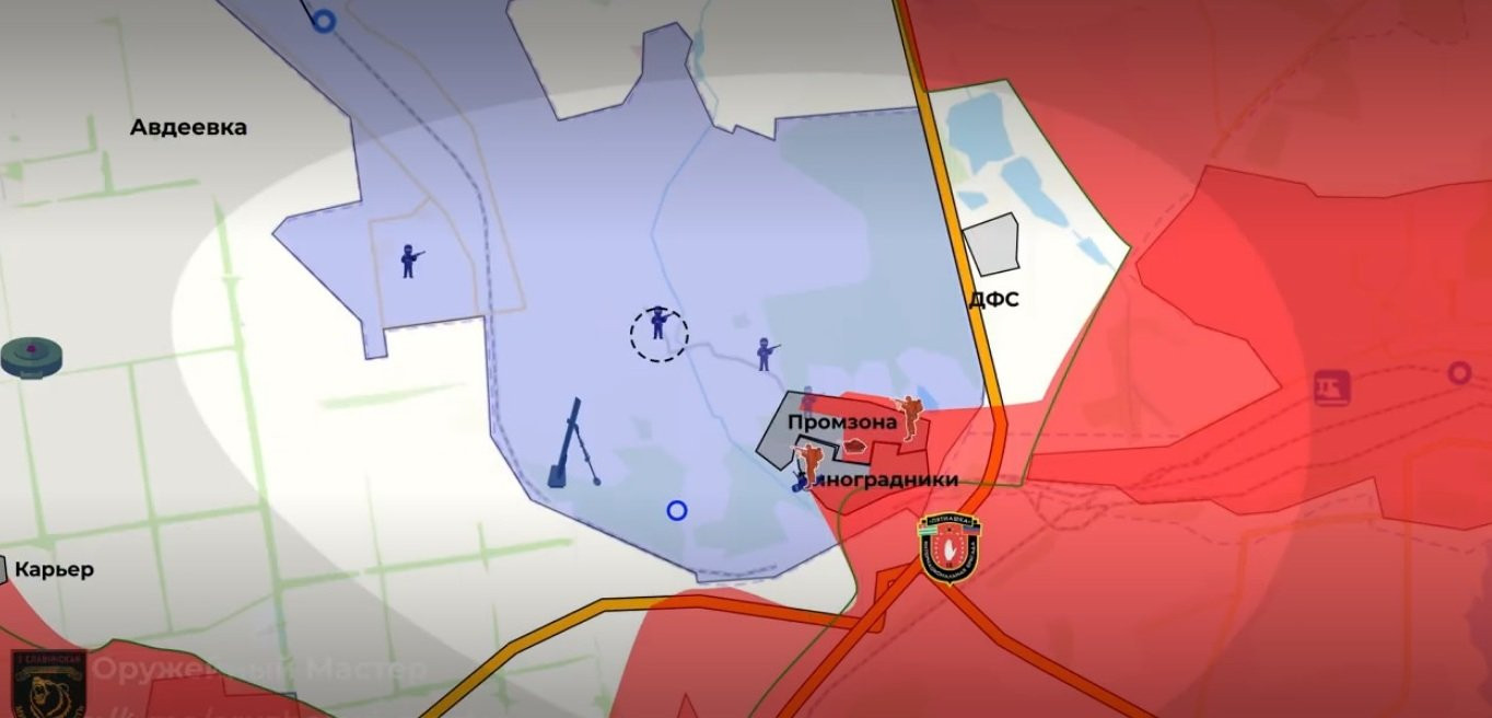Российской армии удалось совершить очередной прорыв на Авдеевском направлении. Так, под контролем Вооружённых сил Российской Федерации (ВС РФ) оказалась промзона Авдеевки, которая ранее использовалась украинскими войсками в качестве укрепрайона.