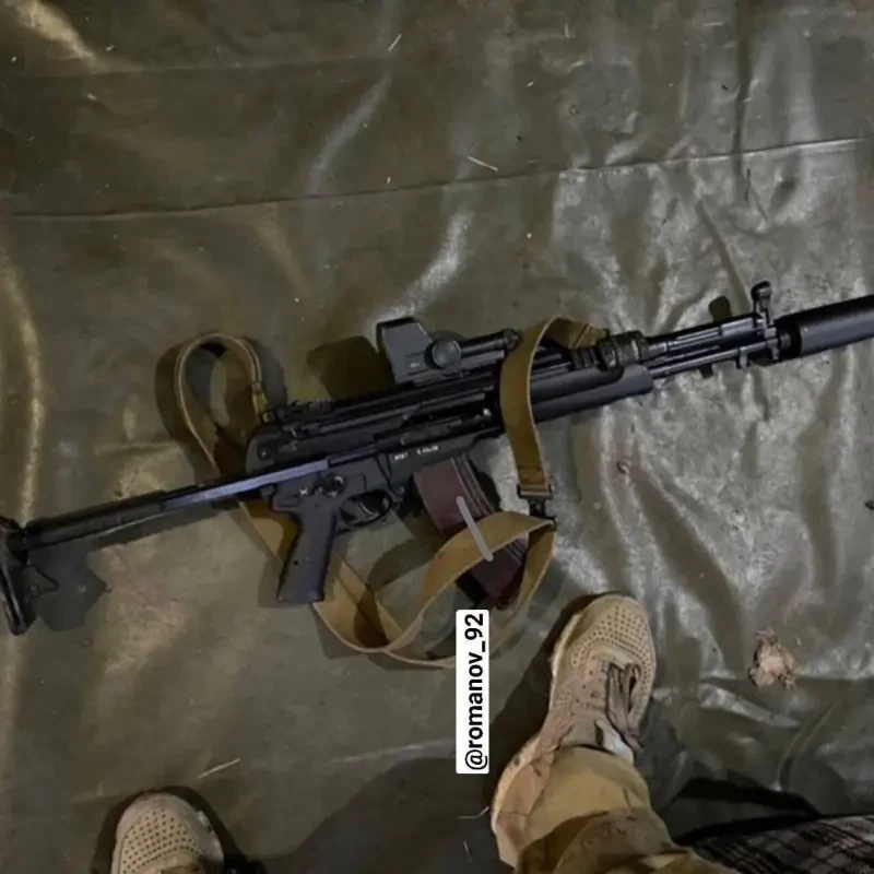А-545 бойца спецназа в ПВД в зоне СВО. По словам самого «оператора», планку Пикатинни для установки сошек и рукоятки пришлось крепить к цевью на саморезы, штатная в этом месте отсутствует, коммерческого цевья для этой системы просто не существует.