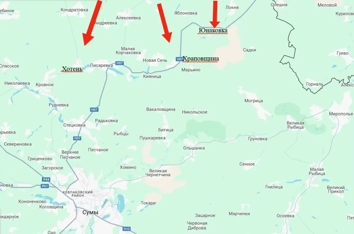 Кроме того, подразделения группировки войск «Север» нанесли поражение скоплениям живой силы и техники ВСУ в районах населенных пунктов Хотень и Храповщина. ВС России продвигаются в направлении последнего, находящегося в 16-17 километрах от областного центра – города Сумы.