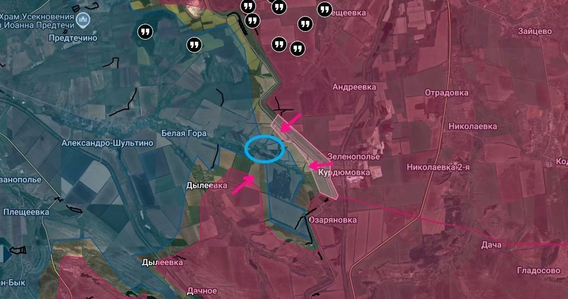 На Северском участке армия России продвигается от Ивано-Дарьевки в сторону Новосёловки.